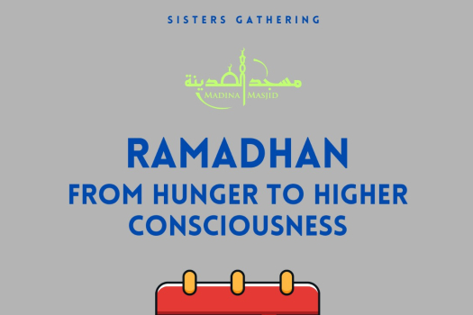 Madina Masjid invites all sisters to a spiritually focused gathering titled "Ramadhan: From Hunger to Higher Consciousness" on Sunday, 25th...