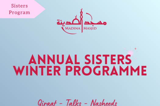 Madina Masjid warmly invites all sisters to attend the Annual Sisters Winter Programme on Sunday, 28th December 2025, from 10:30 AM to 12:00...