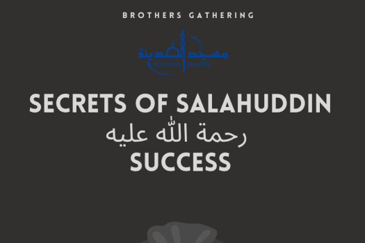Madina Masjid invites brothers to a special gathering titled “Secrets of Salahuddin رحمه الله عليه – Success.” Join Mawlana...
